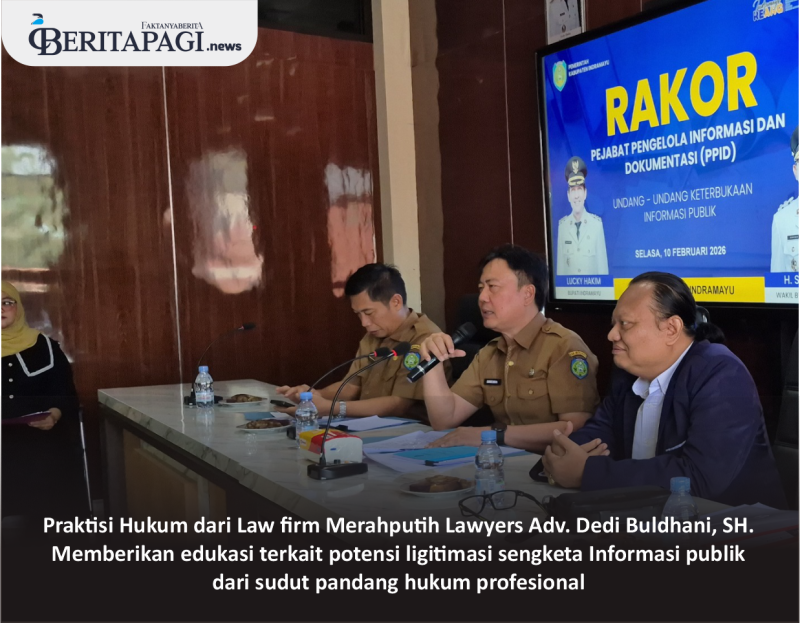 Rakor yang berlangsung secara interaktif ini menghadirkan narasumber lintas sektor, mulai dari unsur birokrasi, praktisi hukum, hingga media massa. Kegiatan tersebut menjadi langkah konkret Pemerintah Kabupaten Indramayu dalam menjamin hak masyarakat atas informasi publik yang transparan, akuntabel, dan sesuai ketentuan perundang-undangan.
